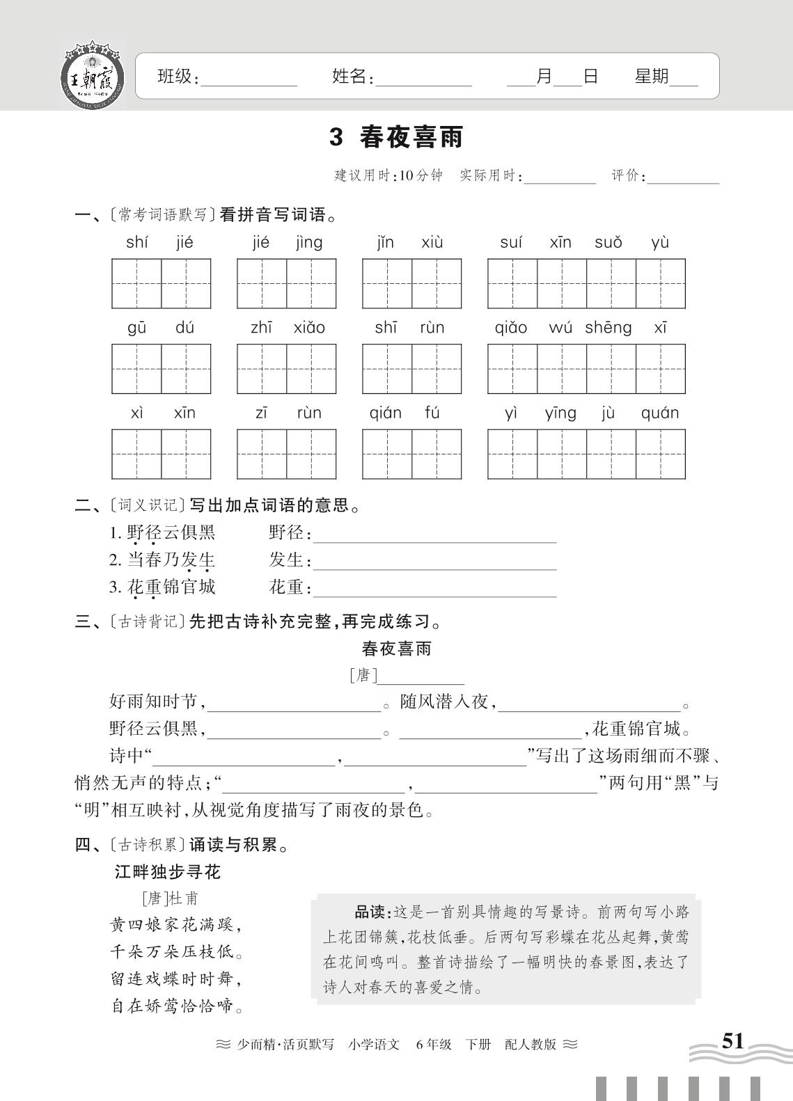 2024春下册六年级语文人教版 古诗词诵读——春夜喜雨