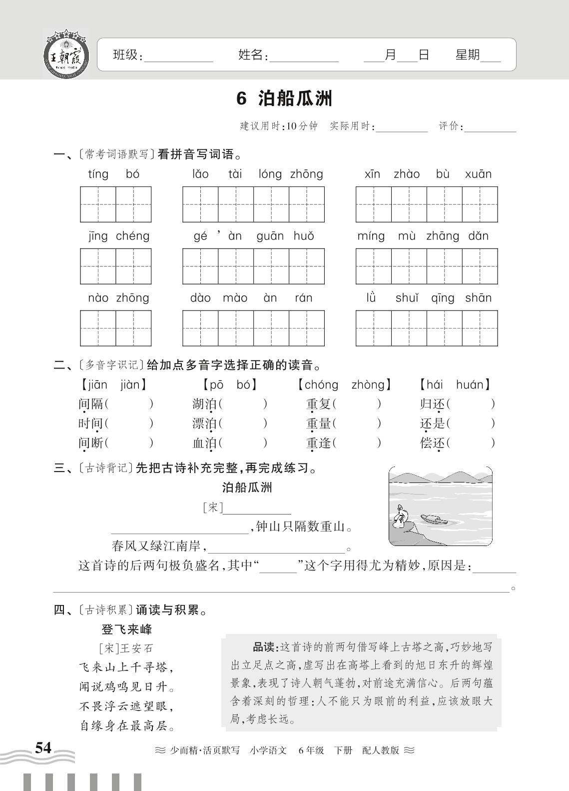 2024春下册六年级语文人教版 古诗词诵读——泊船瓜洲