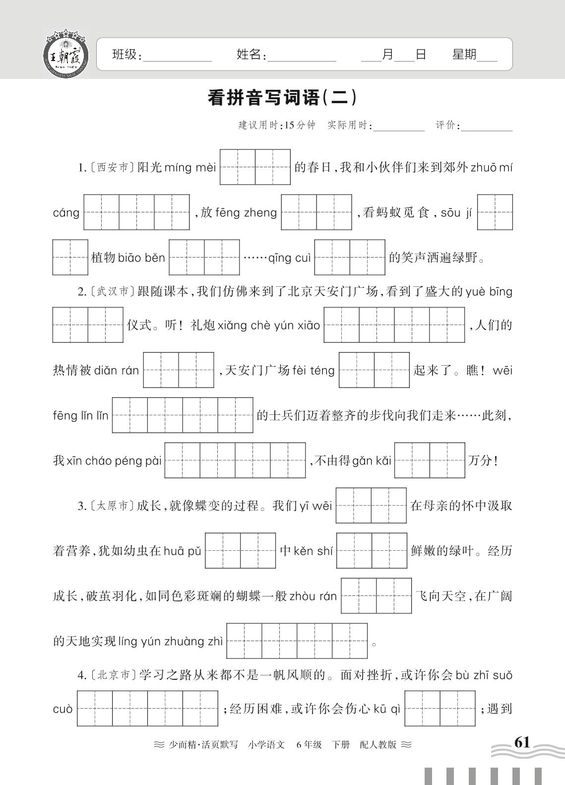 2024春下册六年级语文人教版 期末真题归类复习——看拼音写词语(二)