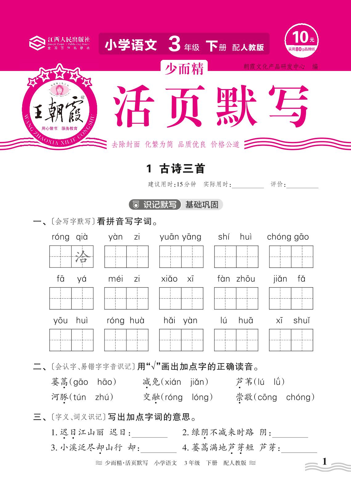 2024春下册三年级语文人教版 第一单元——1. 古诗三首