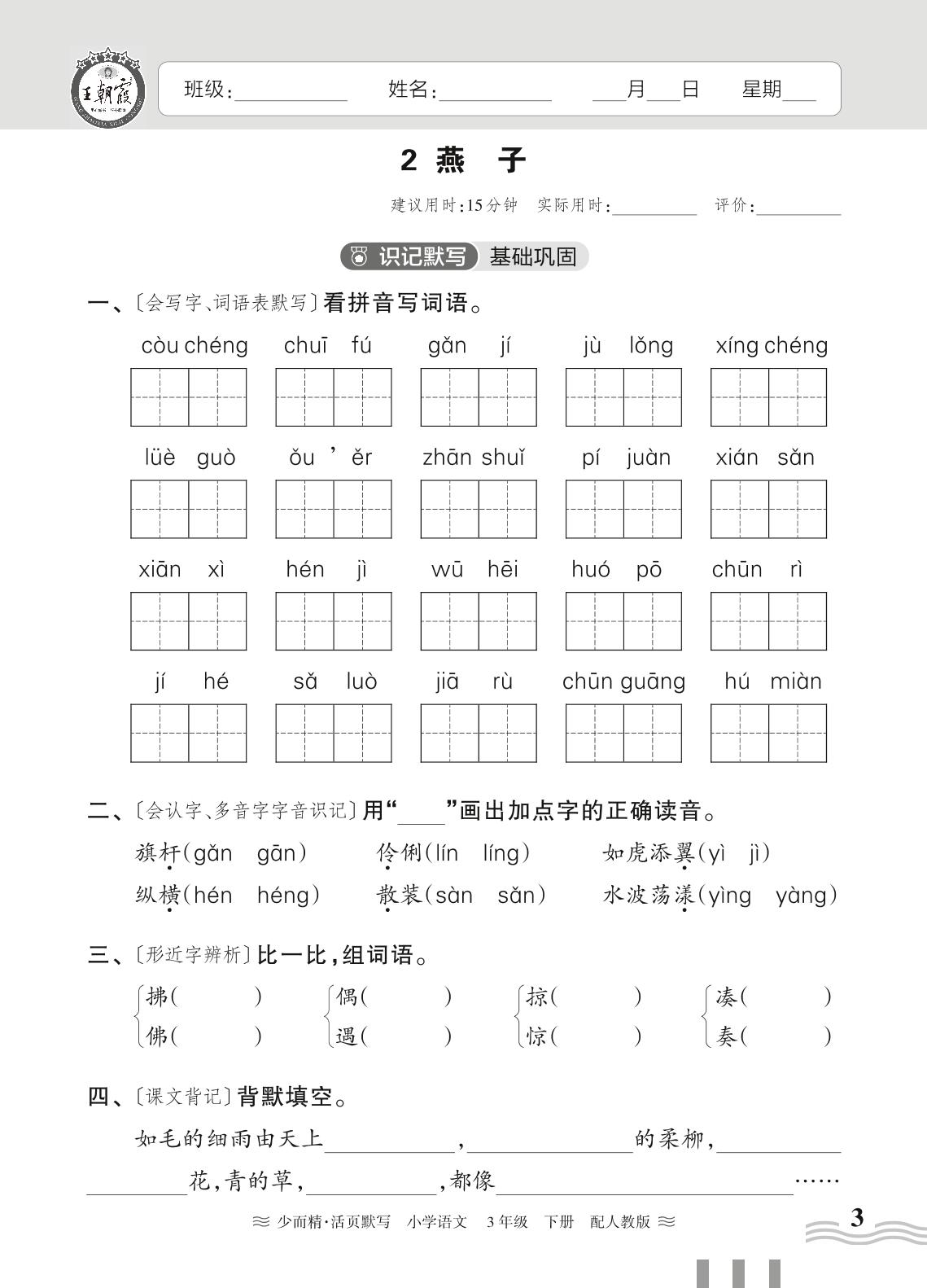 2024春下册三年级语文人教版 第一单元——2. 燕子