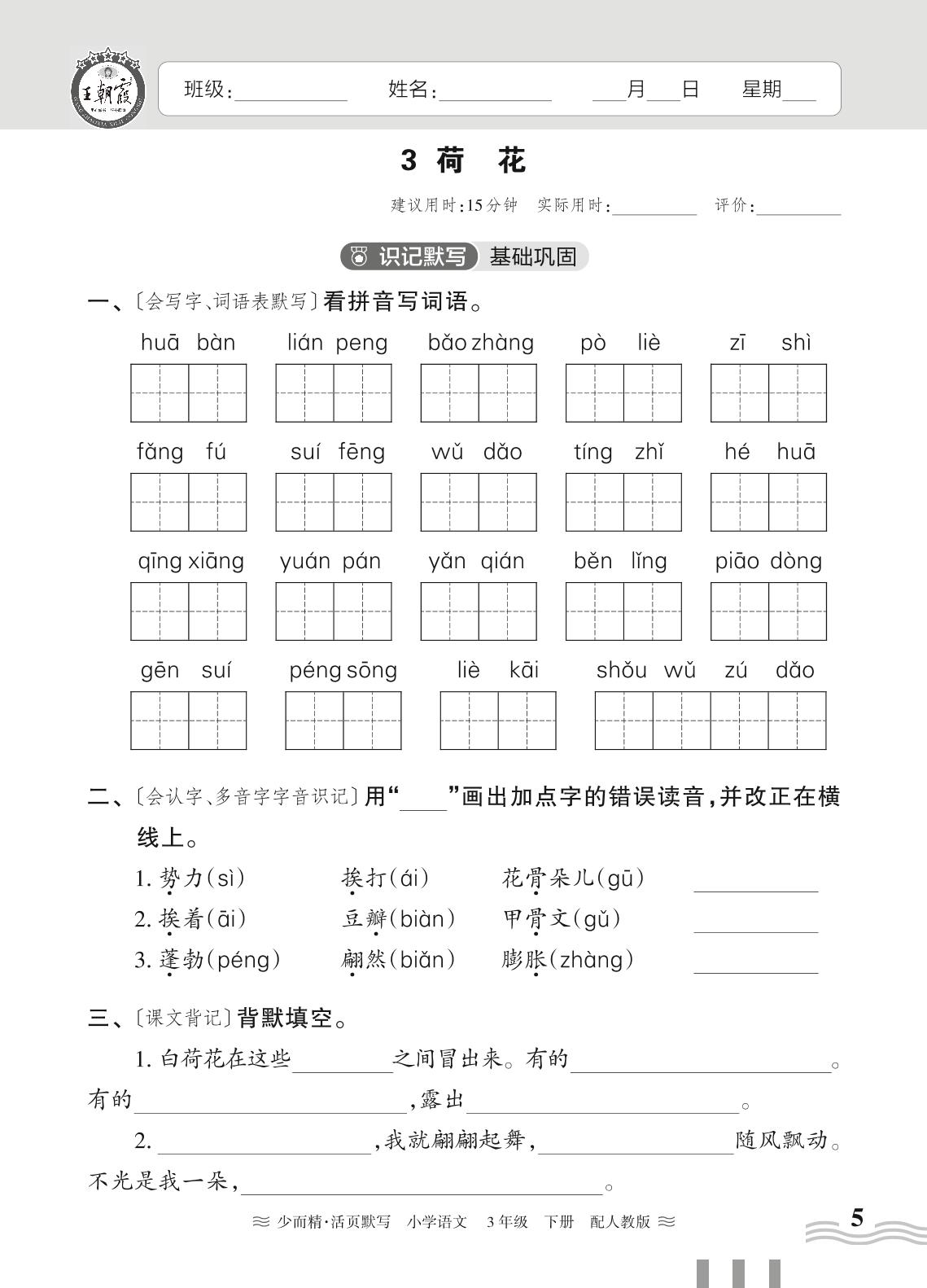 2024春下册三年级语文人教版 第一单元——3. 荷花