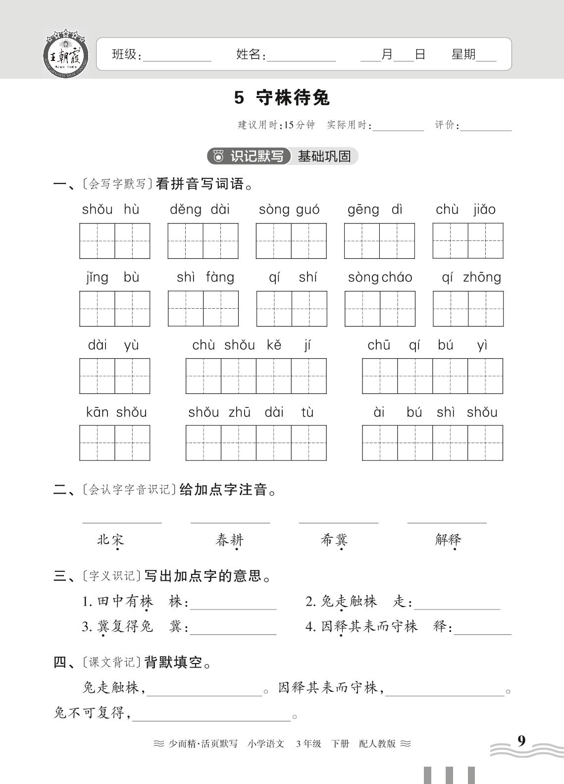 2024春下册三年级语文人教版 第二单元——5. 守株待兔