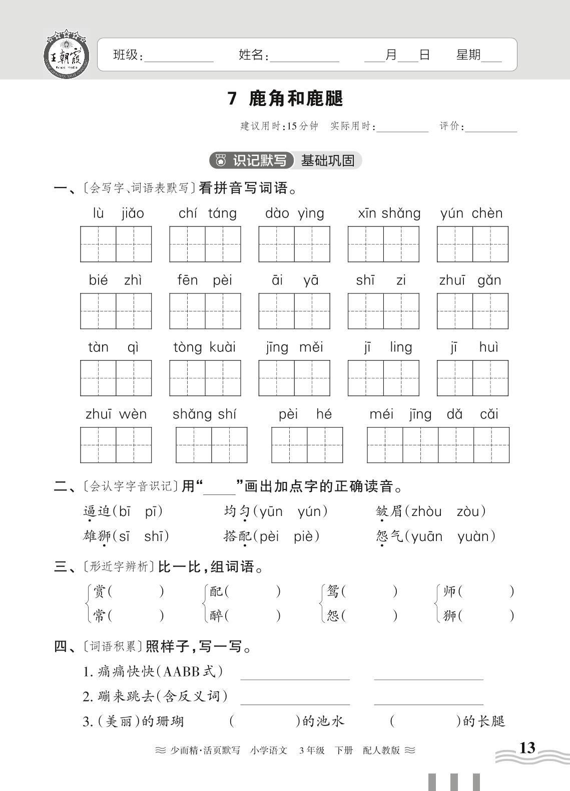 2024春下册三年级语文人教版 第二单元——7. 鹿角和鹿腿