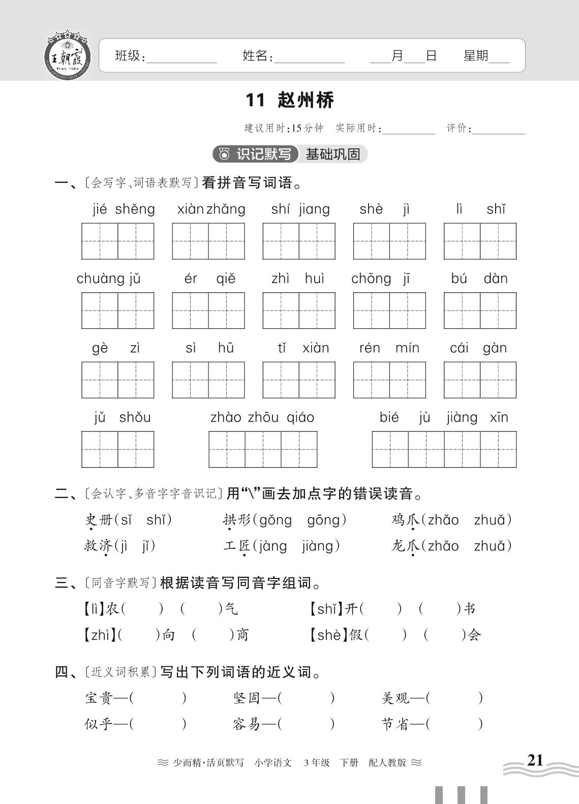 2024春下册三年级语文人教版 第三单元——11. 赵州桥