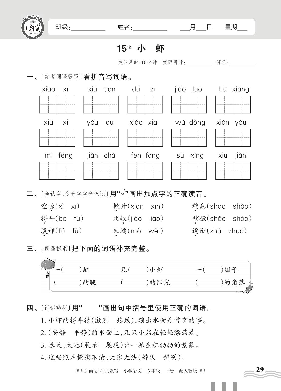 2024春下册三年级语文人教版 第四单元——15. 小虾