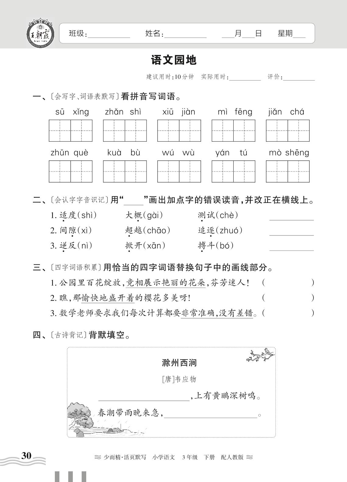 三年级语文人教版下册课时作业