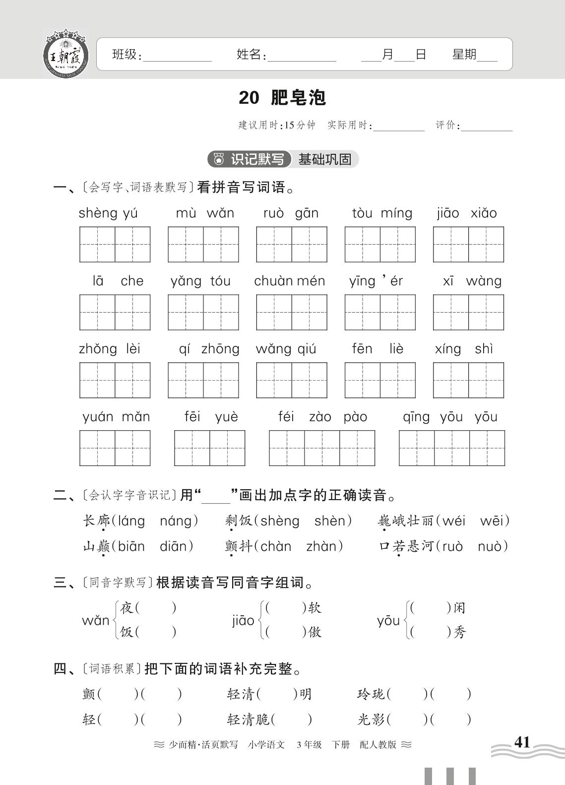 2024春下册三年级语文人教版 第六单元——20. 肥皂泡