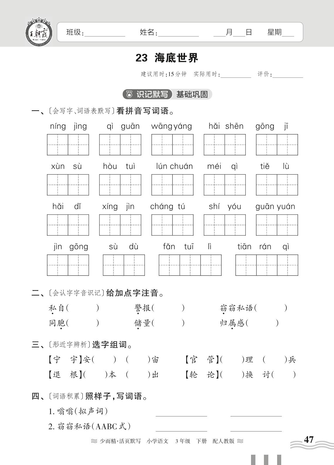 2024春下册三年级语文人教版 第七单元——23. 海底世界