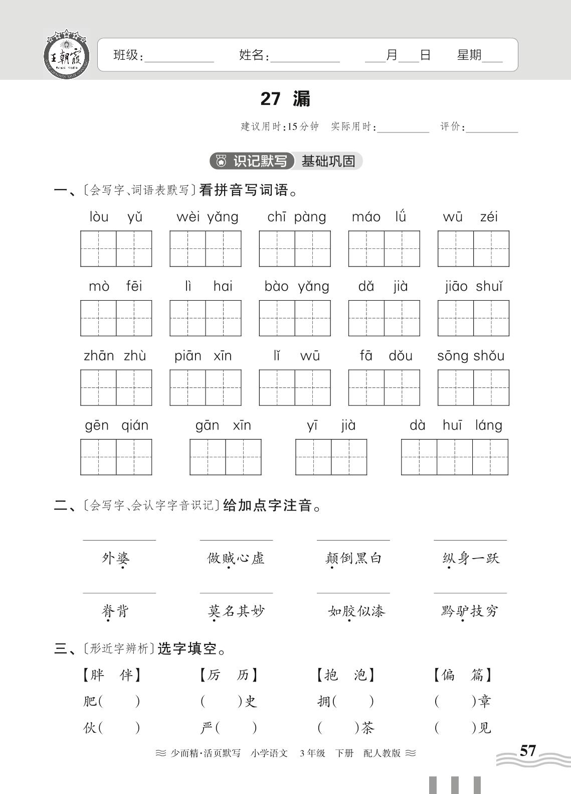 2024春下册三年级语文人教版 第八单元——27. 漏