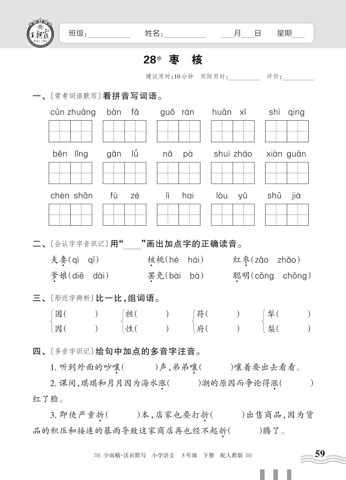三年级语文人教版下册课时作业