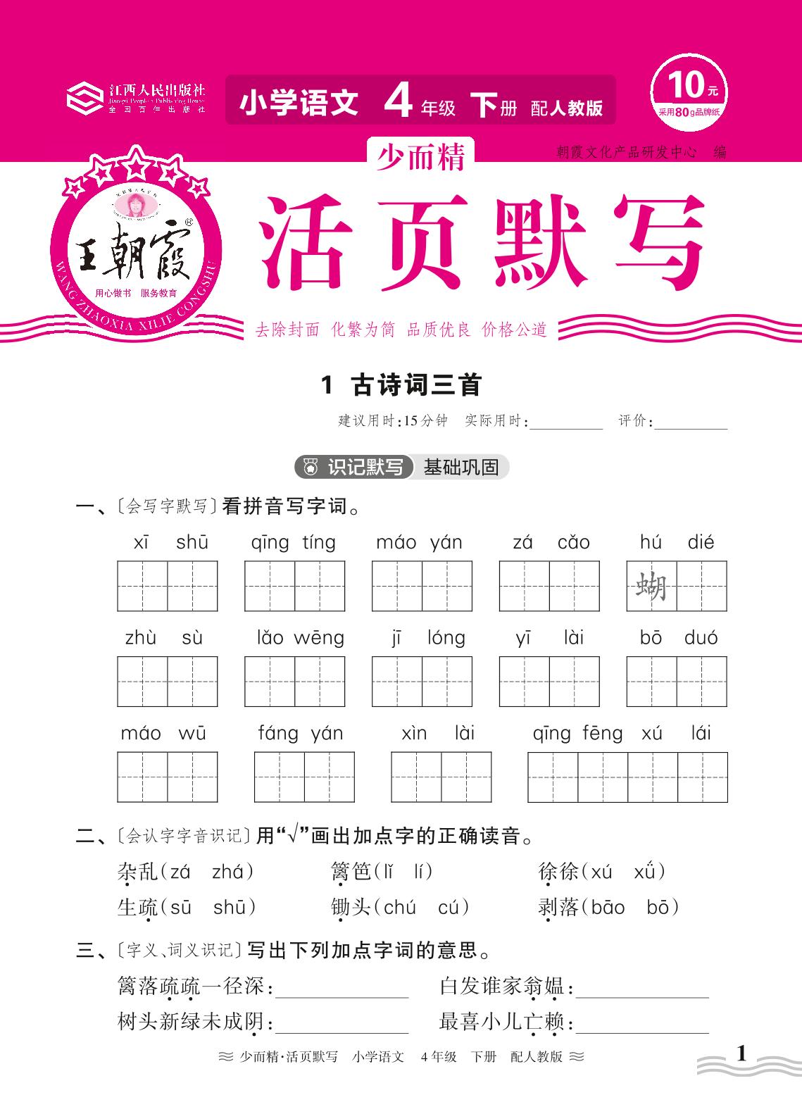 2024春下册四年级语文人教版 第一单元——1. 古诗词三首