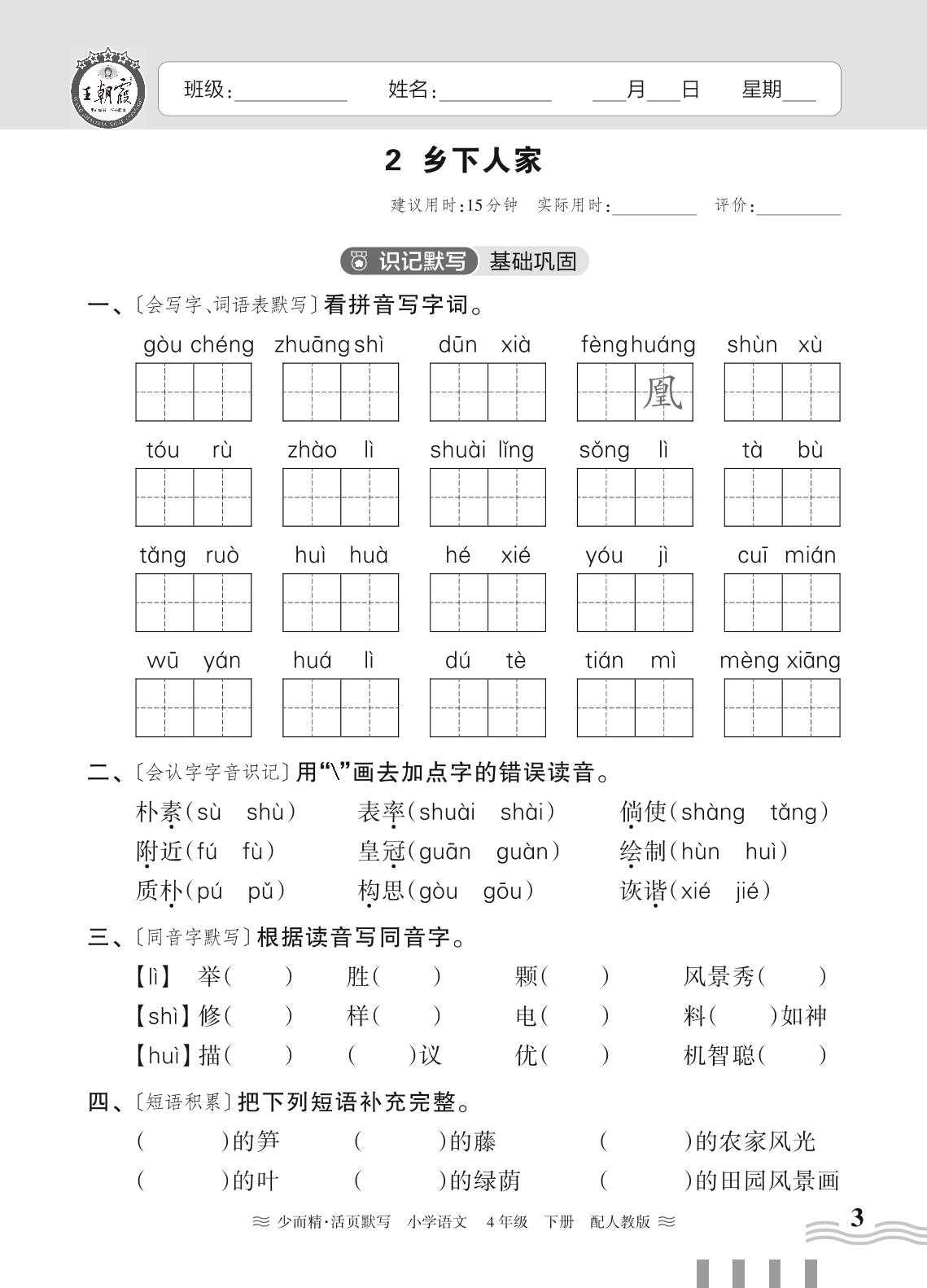 2024春下册四年级语文人教版 第一单元——2. 乡下人家