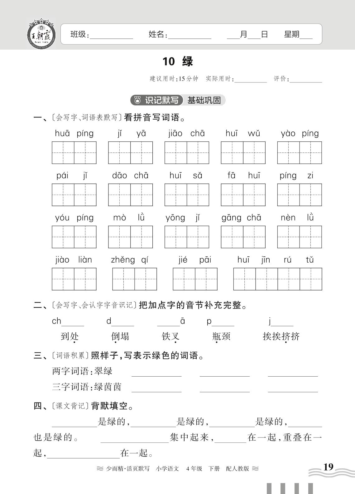 2024春下册四年级语文人教版 第三单元——10. 绿