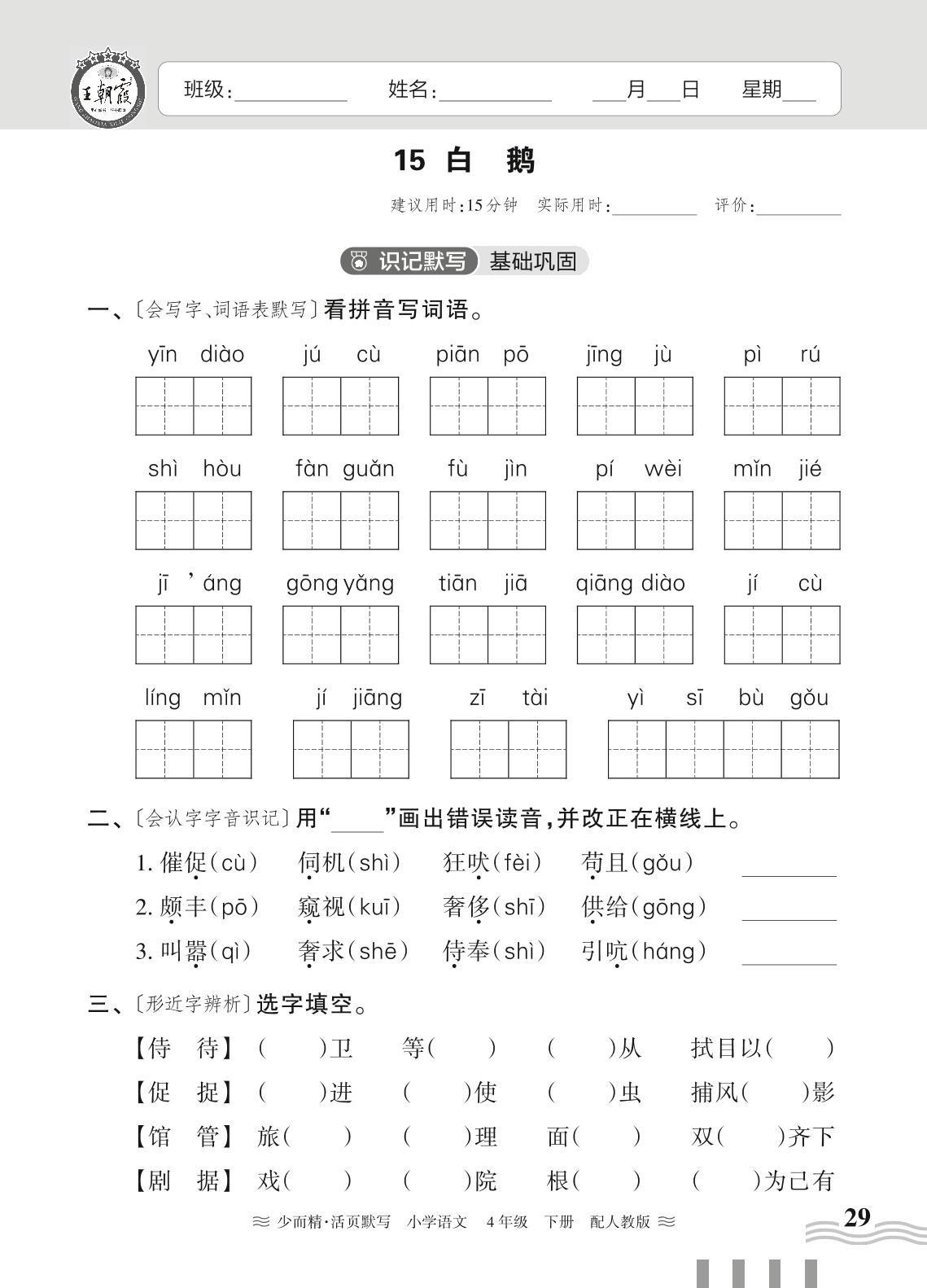 2024春下册四年级语文人教版 第四单元——15. 白鹅