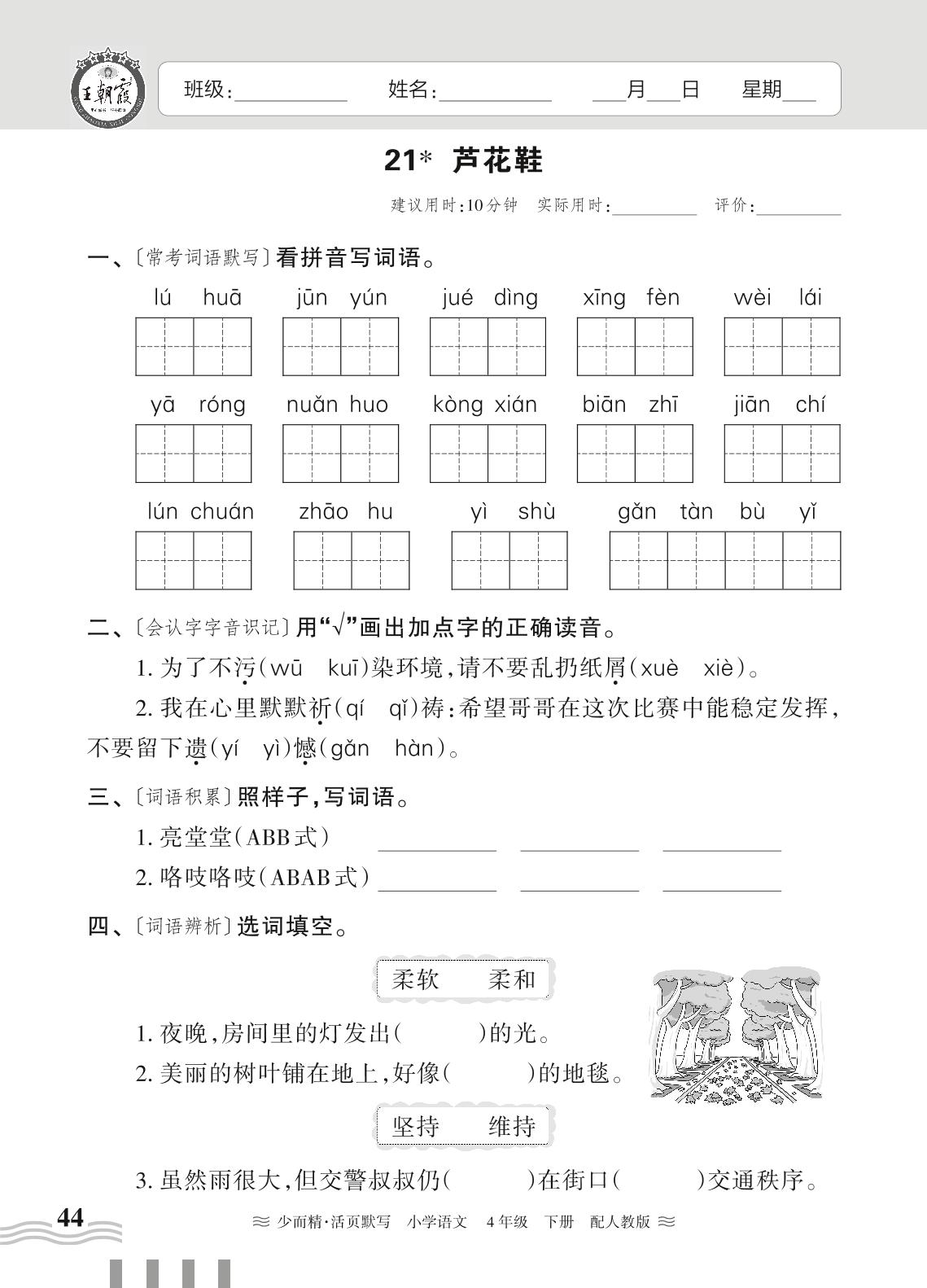 2024春下册四年级语文人教版 第六单元——21. 芦花鞋