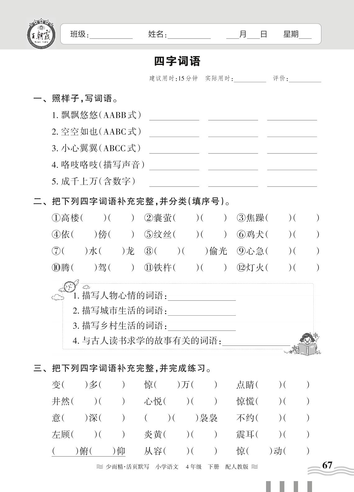 2024春下册四年级语文人教版 期末真题归类练习——四字词语