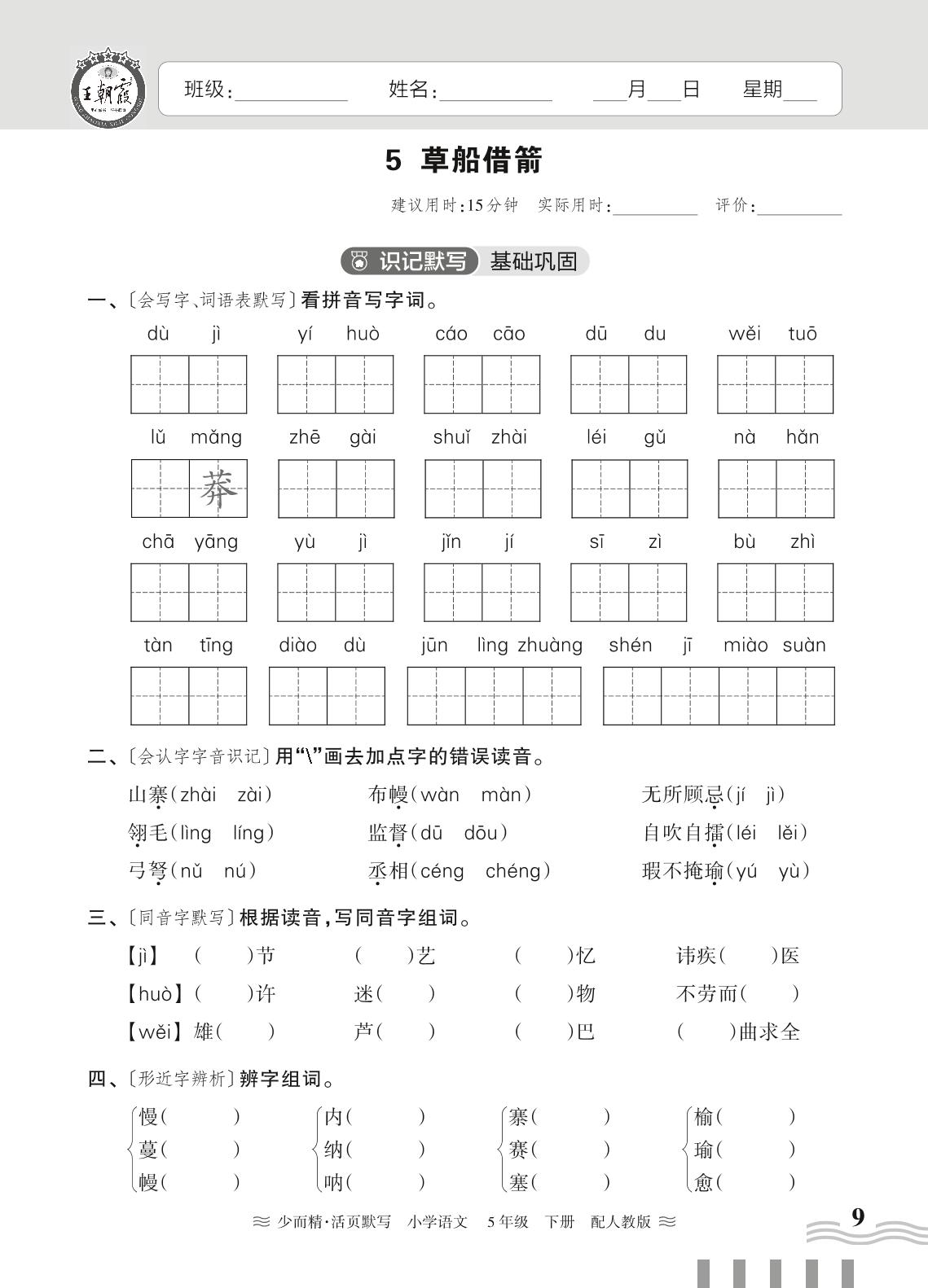 2024春下册五年级语文人教版 第二单元——5. 草船借箭