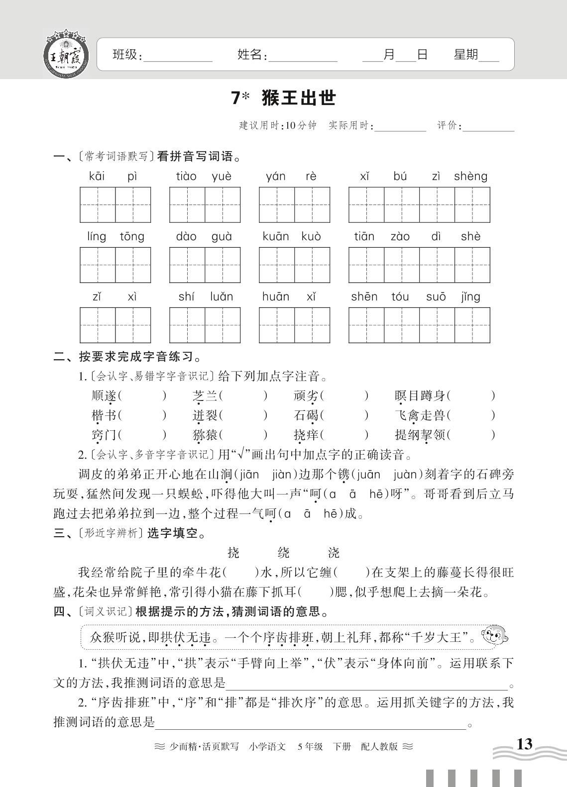 2024春下册五年级语文人教版 第二单元——7. 猴王出世