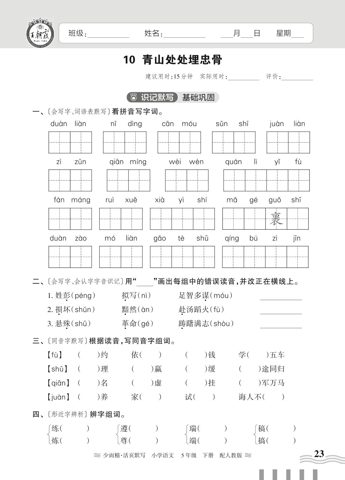 2024春下册五年级语文人教版 第四单元——10. 青山处处埋忠骨