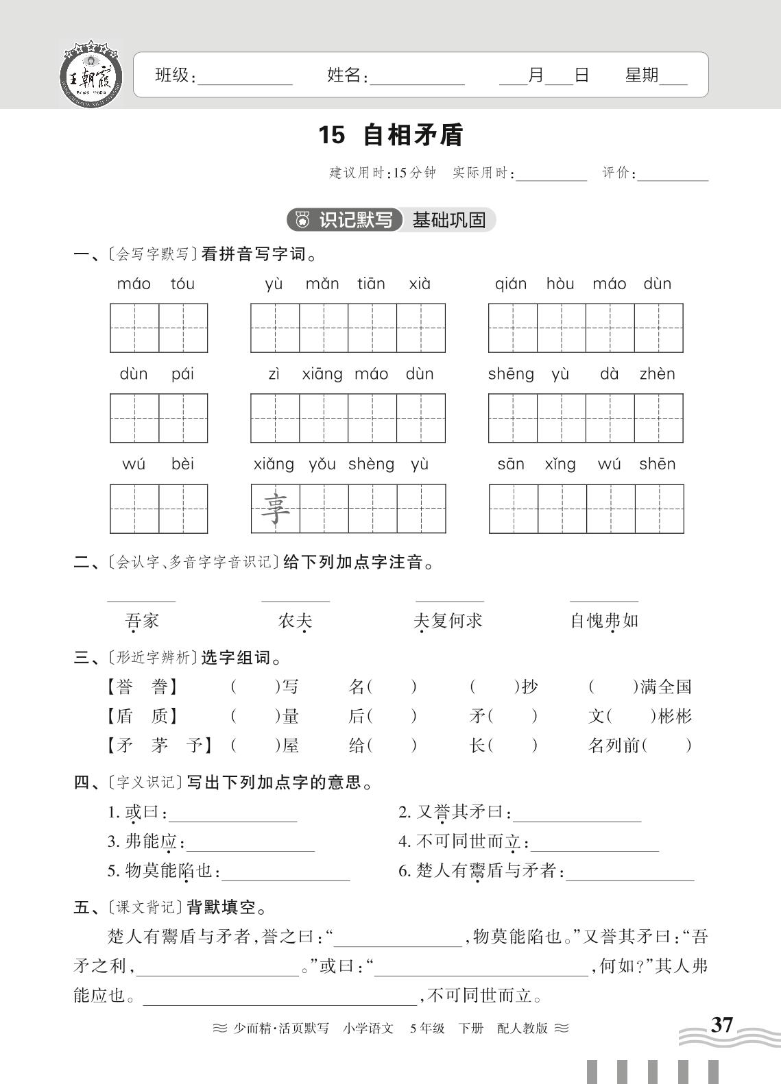 2024春下册五年级语文人教版 第六单元——15. 自相矛盾