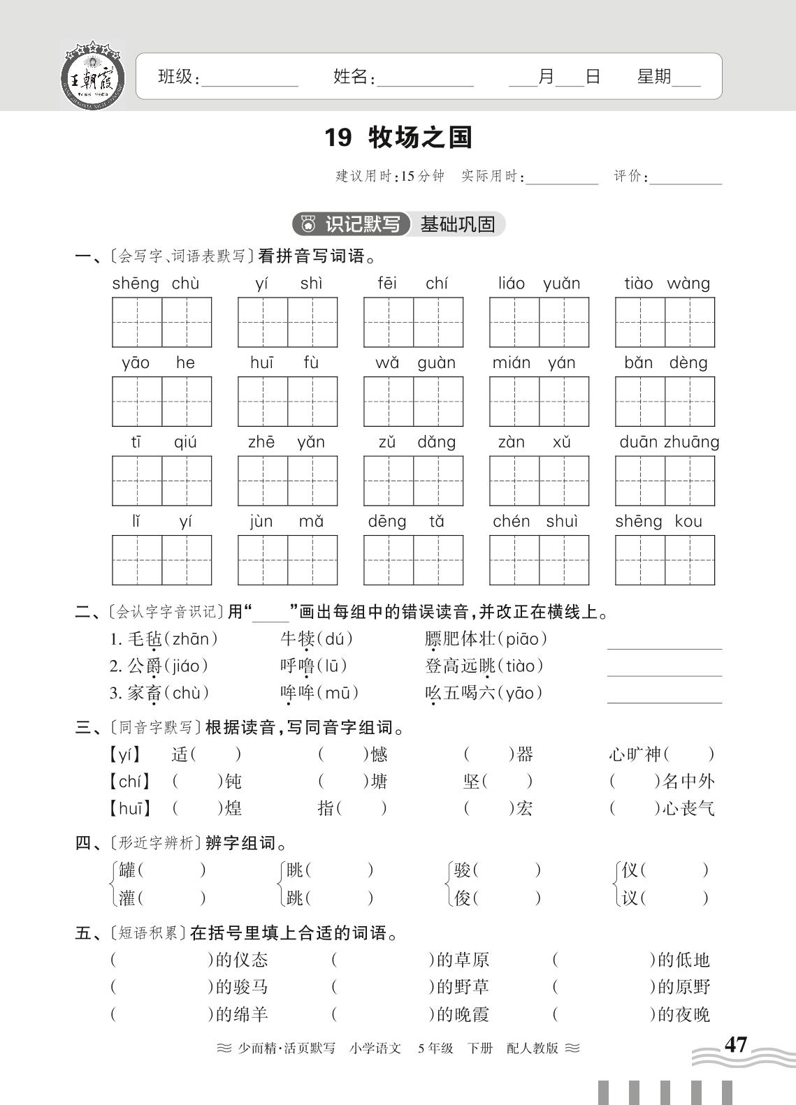 2024春下册五年级语文人教版 第七单元——19. 牧场之国
