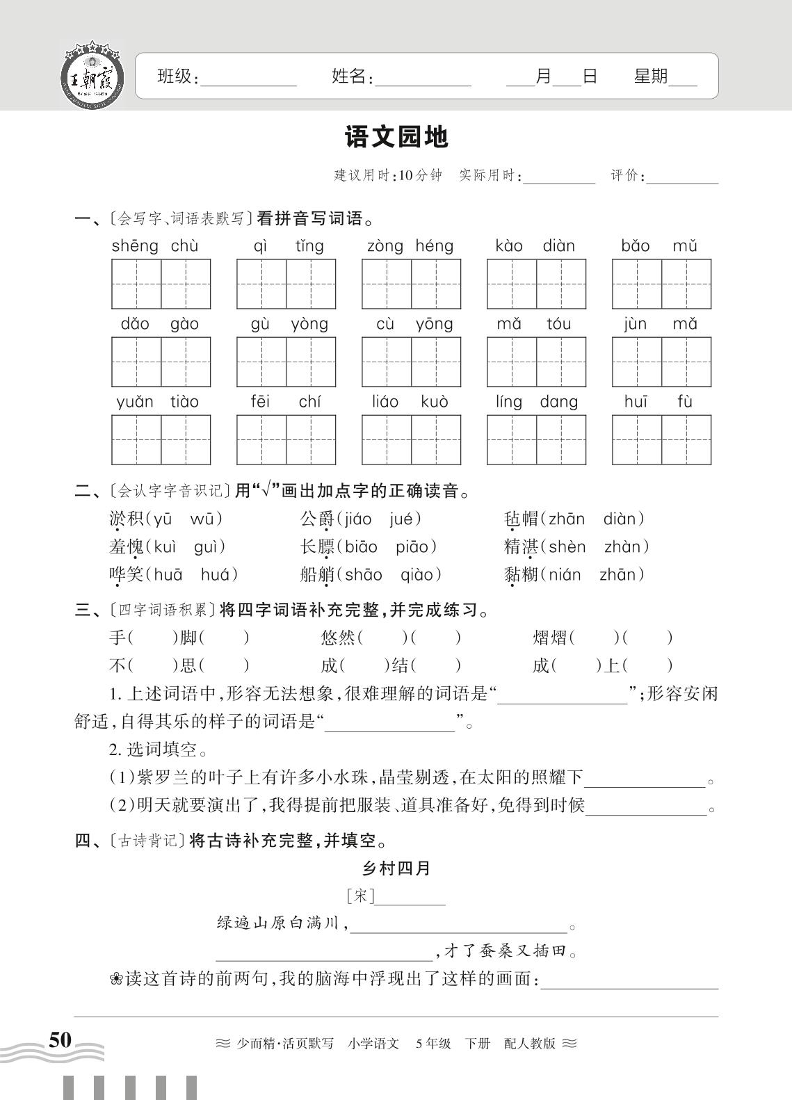 五年级语文人教版下册课时作业
