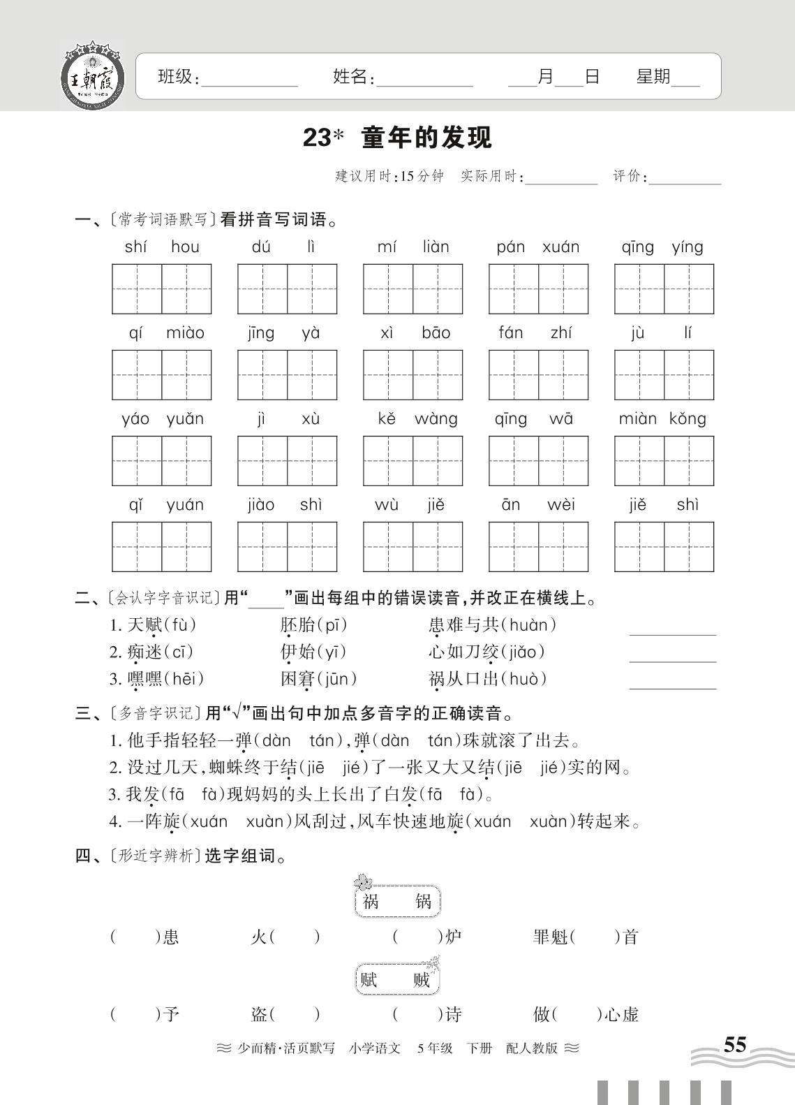 2024春下册五年级语文人教版 第八单元——23. 童年的发现