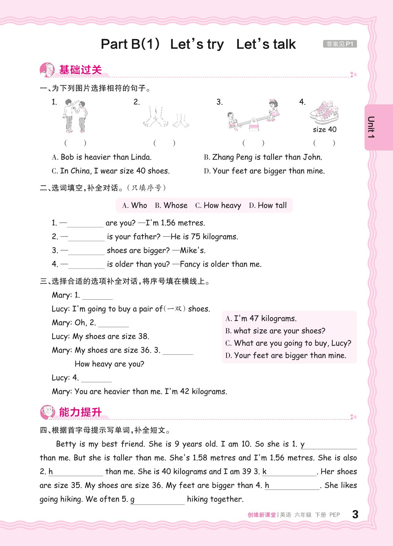 2024春下册六年级英语人教PEP版 Unit 1—Part B(1) Let's try Let's talk