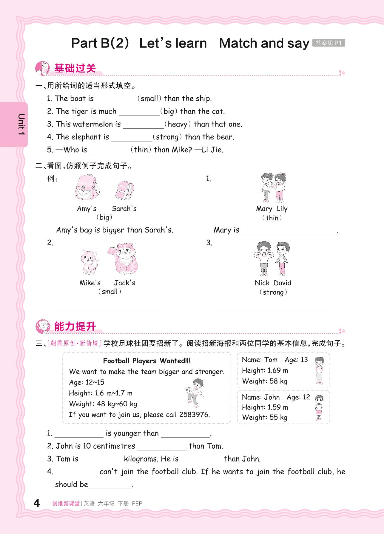 2024春下册六年级英语人教PEP版 Unit 1—Part B(2) Let's learn Match and say