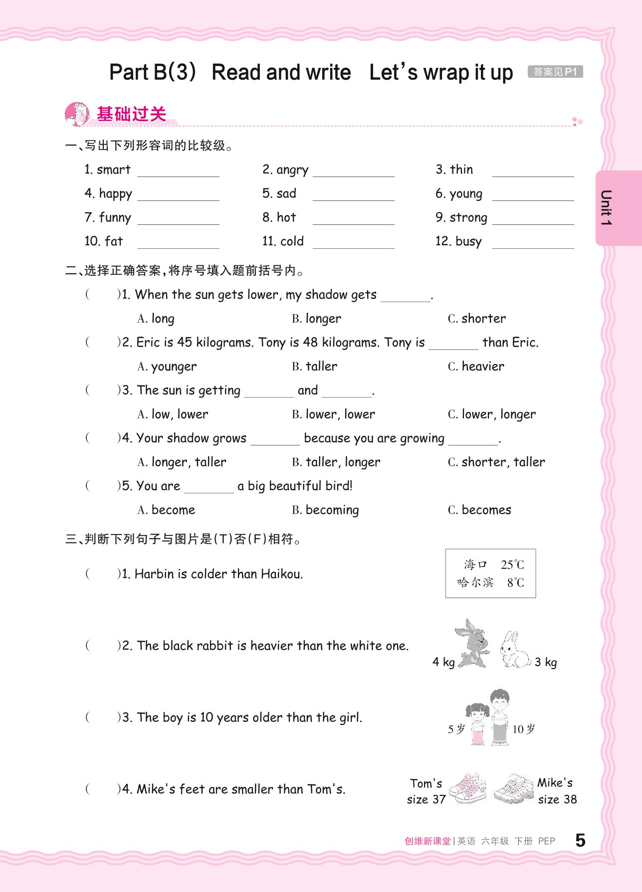 2024春下册六年级英语人教PEP版 Unit 1—Part B(3) Read and write Let's wrap it up
