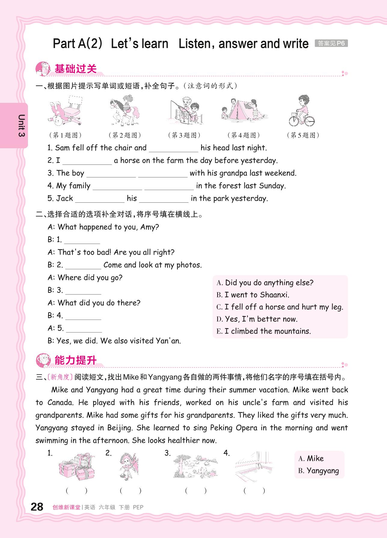 2024春下册六年级英语人教PEP版 Unit 3—Part A(2) Let's learn Listen,answer and write