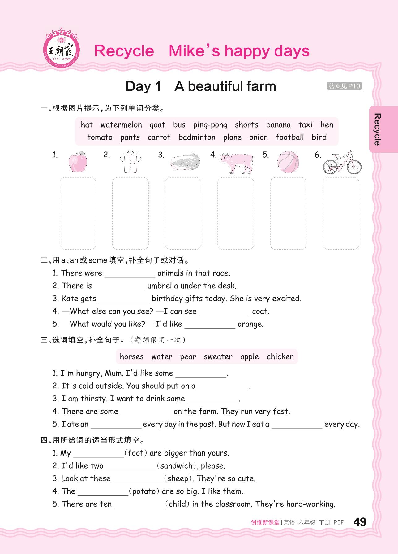 2024春下册六年级英语人教PEP版 Recycle—Day 1 A beautiful farm