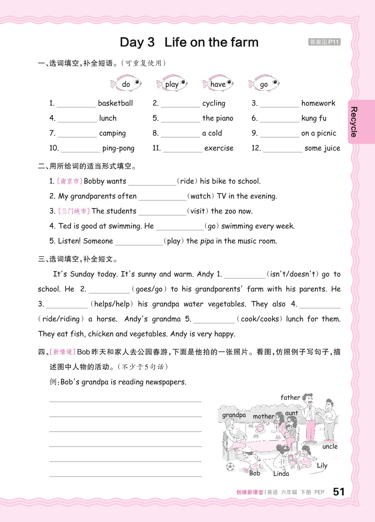 2024春下册六年级英语人教PEP版 Recycle—Day 3 Life on the farm