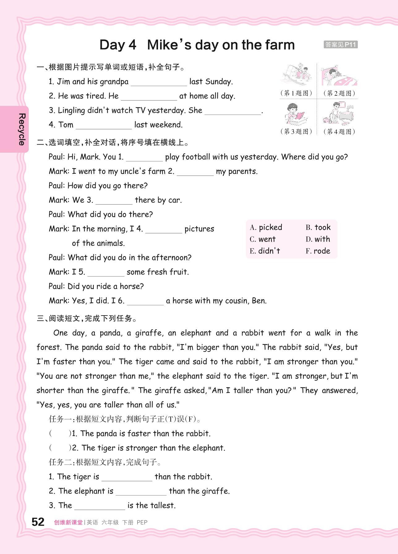 2024春下册六年级英语人教PEP版 Recycle—Day 4 Mike's day on the farm