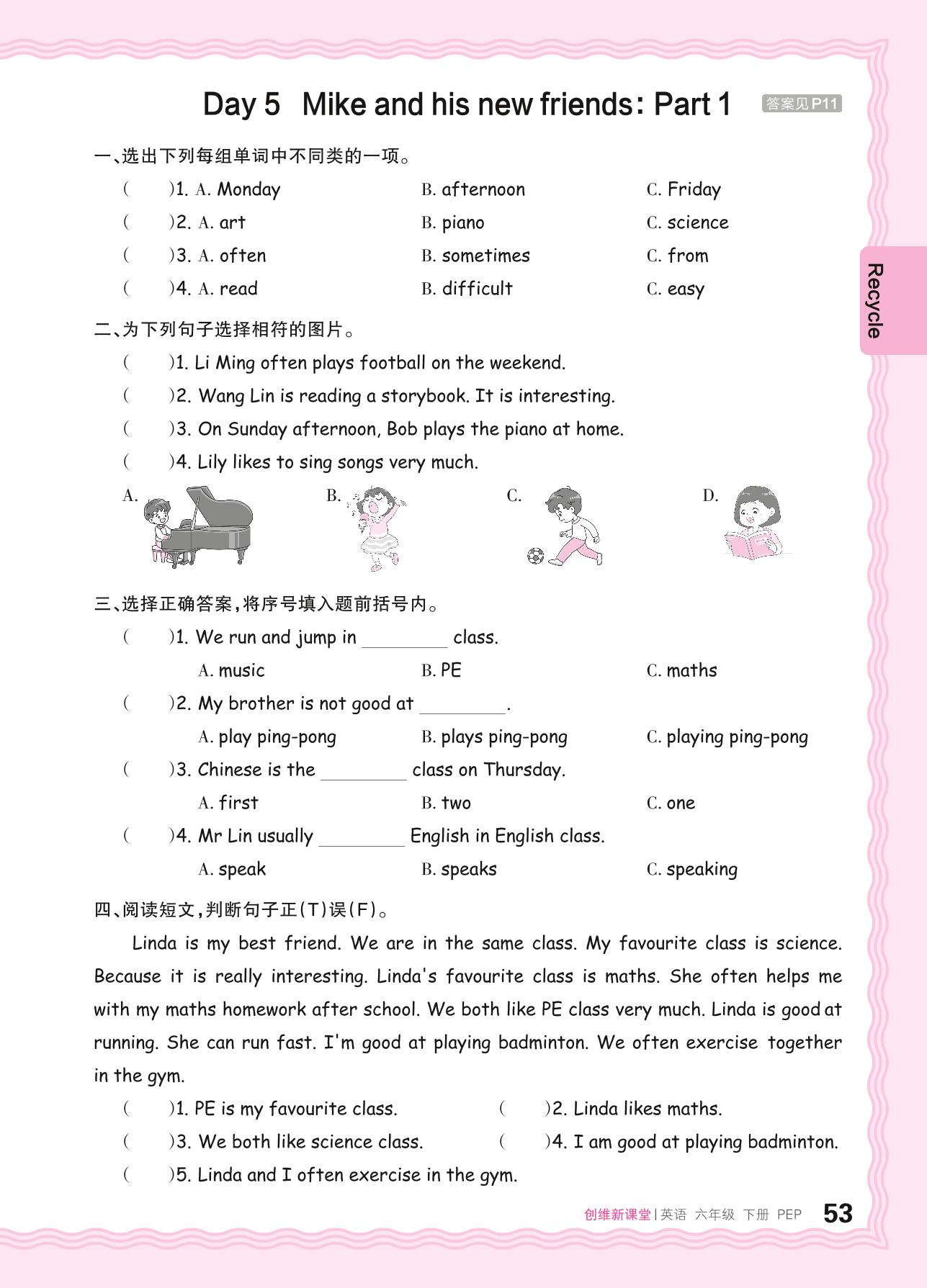 2024春下册六年级英语人教PEP版 Recycle—Day 5 Mike and his new friends:Part 1