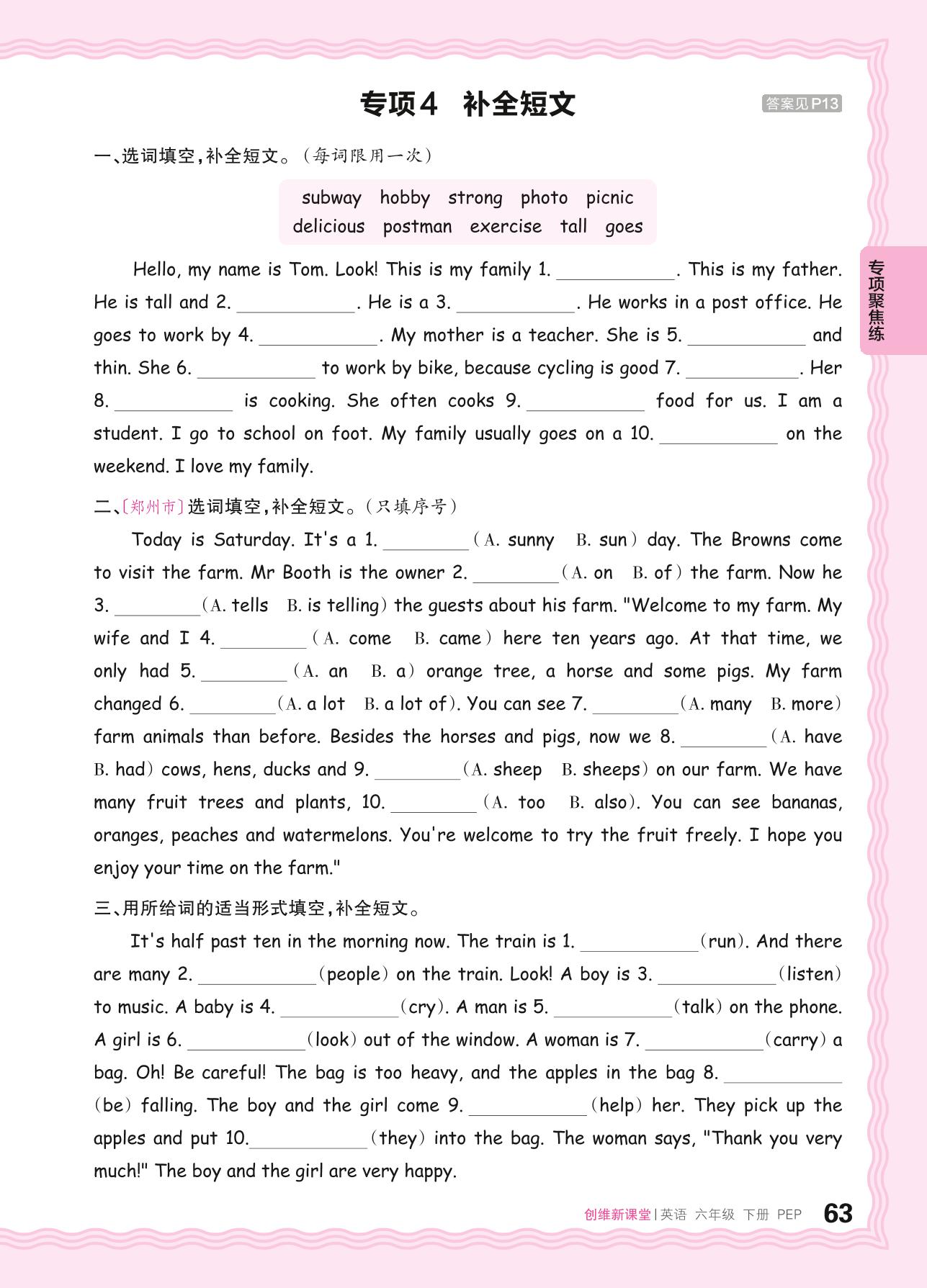 2024春下册六年级英语人教PEP版 期末专项聚焦练——补全短文【4】