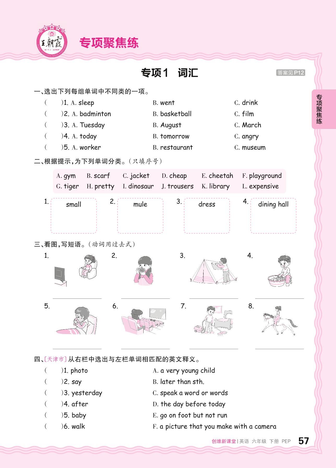 2024春下册六年级英语人教PEP版 期末专项聚焦练——词汇【1】