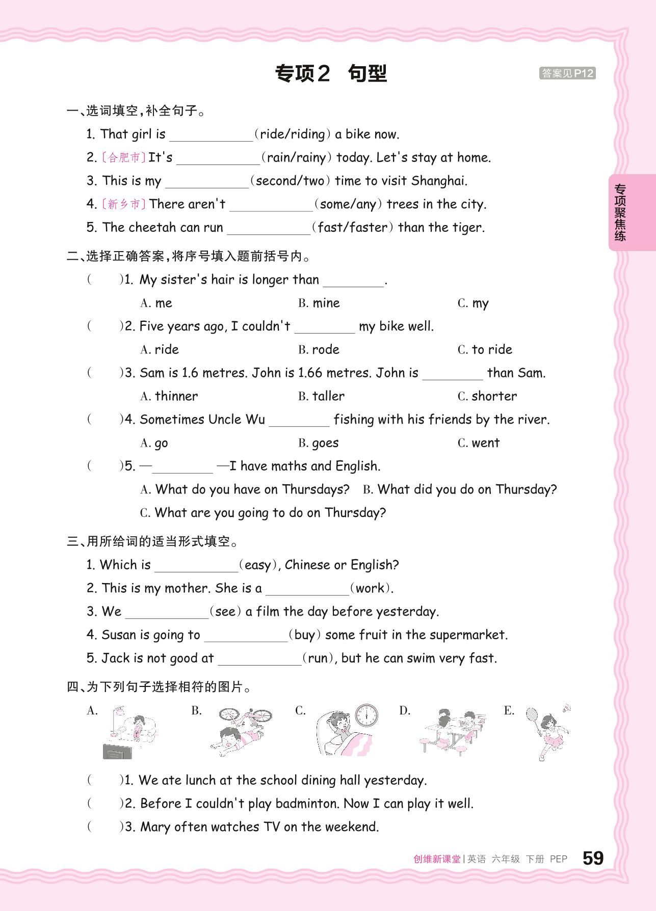 2024春下册六年级英语人教PEP版 期末专项聚焦练——句型【2】