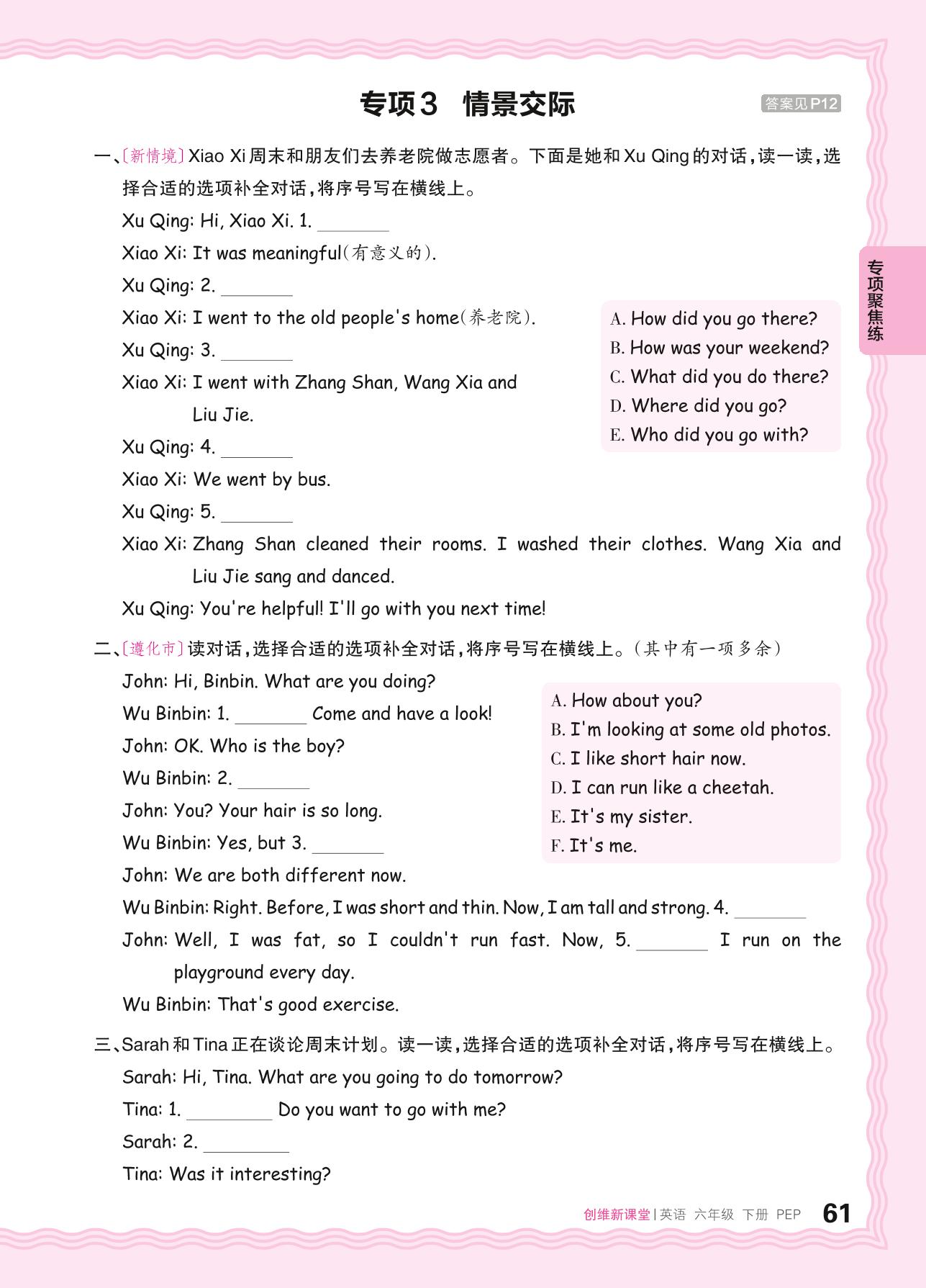 2024春下册六年级英语人教PEP版 期末专项聚焦练——情景交际【3】