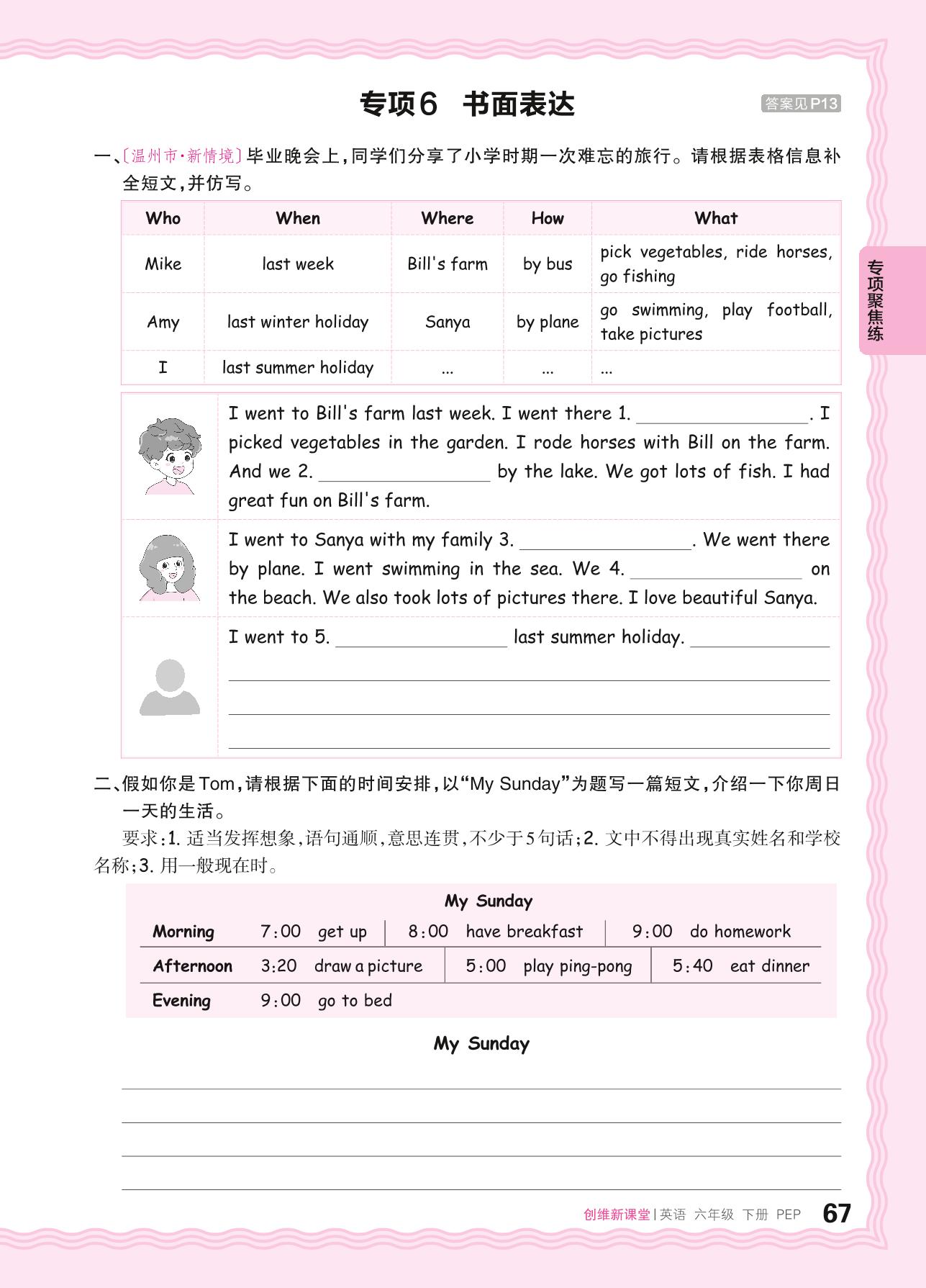 2024春下册六年级英语人教PEP版 期末专项聚焦练——书面表达【6】