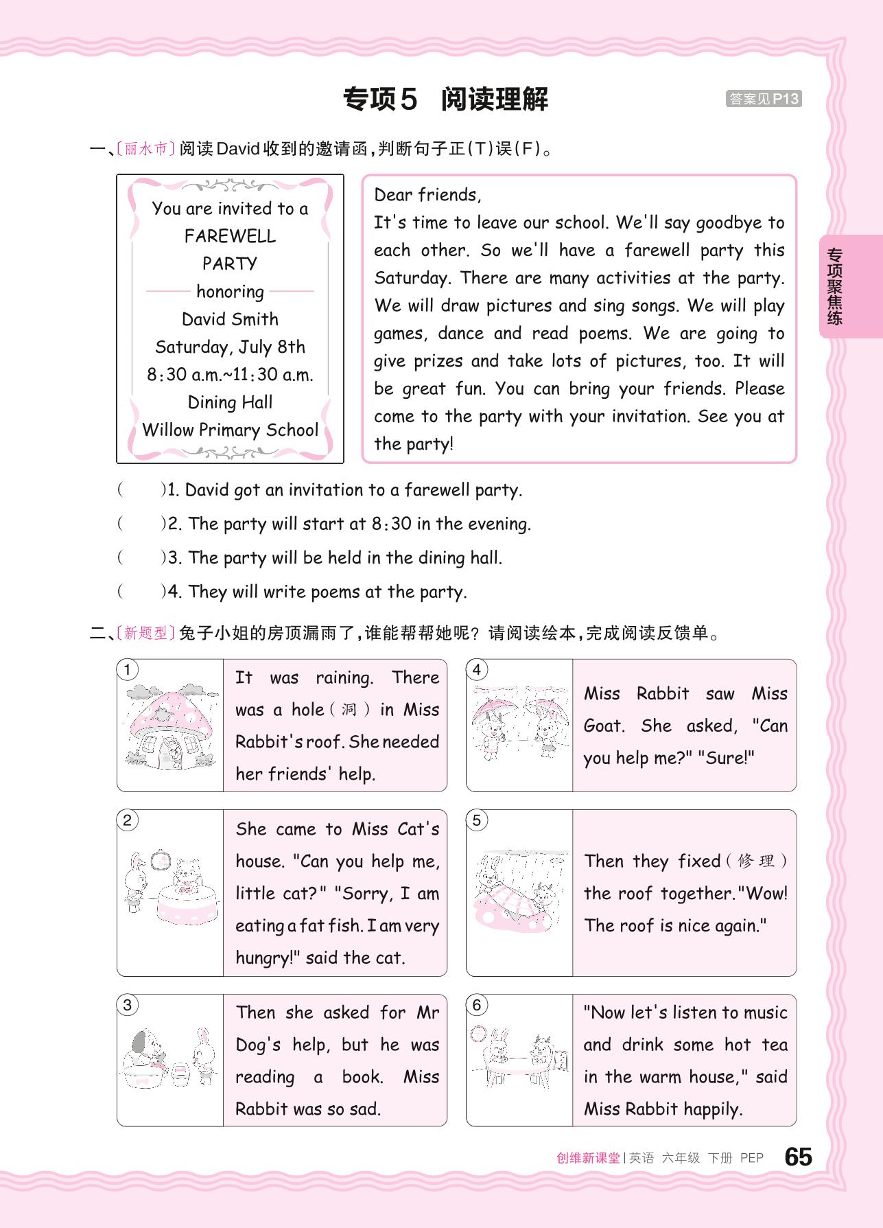 2024春下册六年级英语人教PEP版 期末专项聚焦练——阅读理解【5】