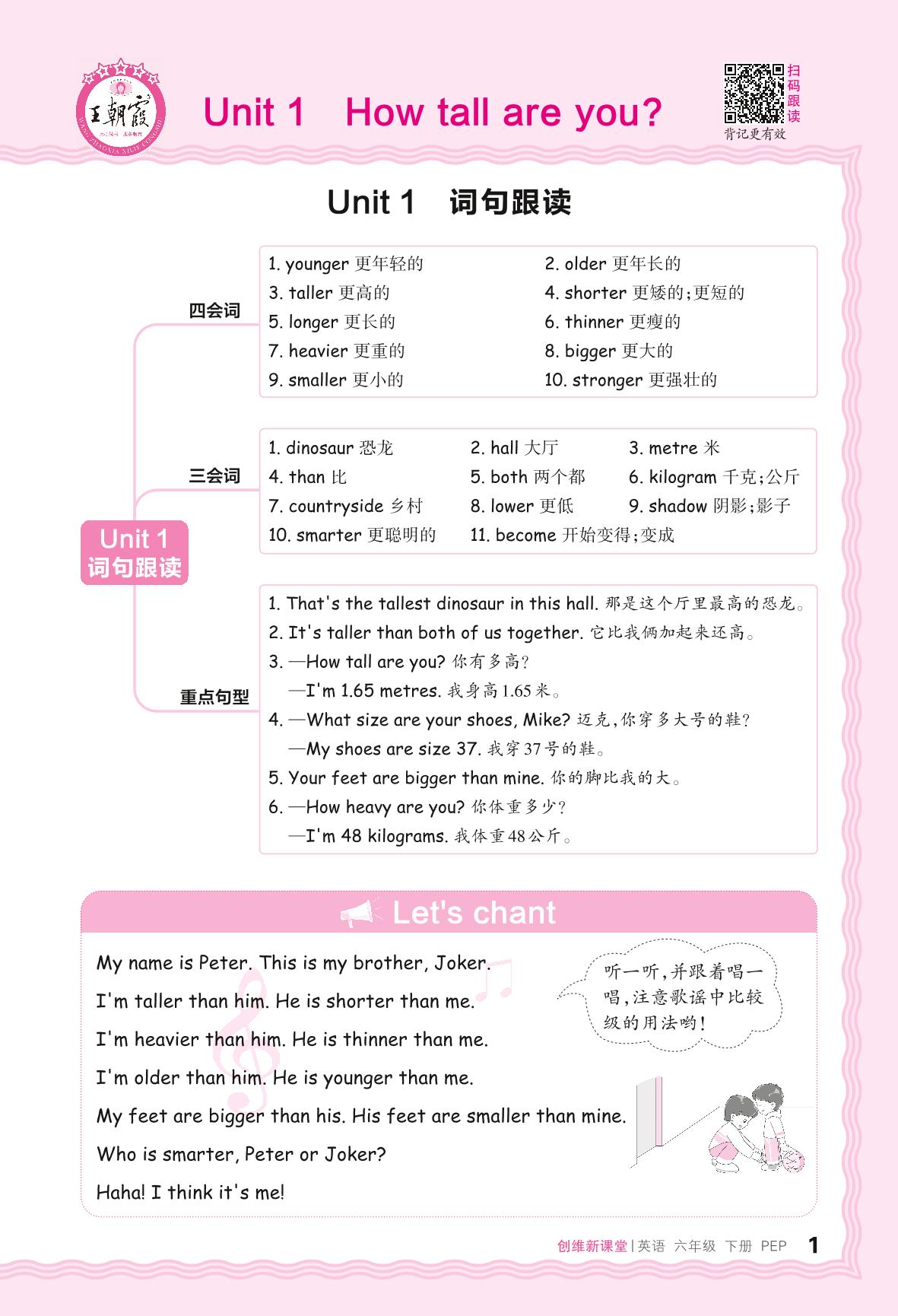 2024春下册六年级英语人教PEP版 Unit 1 词句跟读