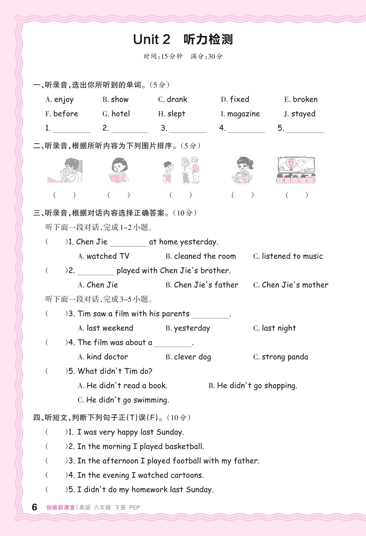 2024春下册六年级英语人教PEP版 Unit 2 听力检测