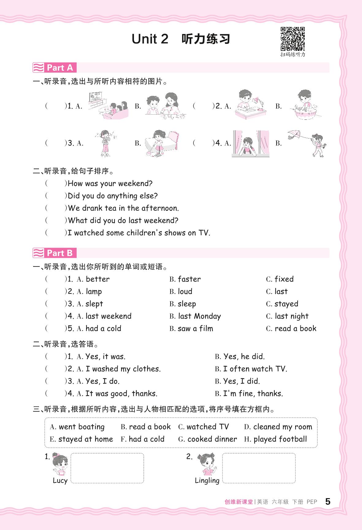 2024春下册六年级英语人教PEP版 Unit 2 听力练习