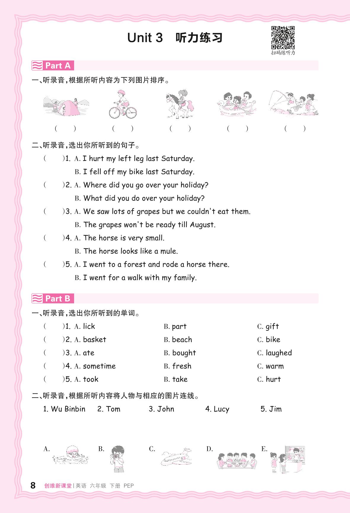 2024春下册六年级英语人教PEP版 Unit 3 听力练习