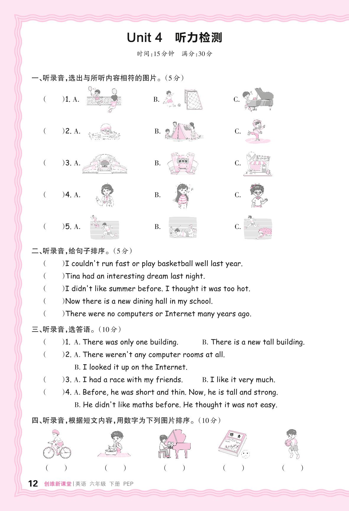 2024春下册六年级英语人教PEP版 Unit 4 听力检测