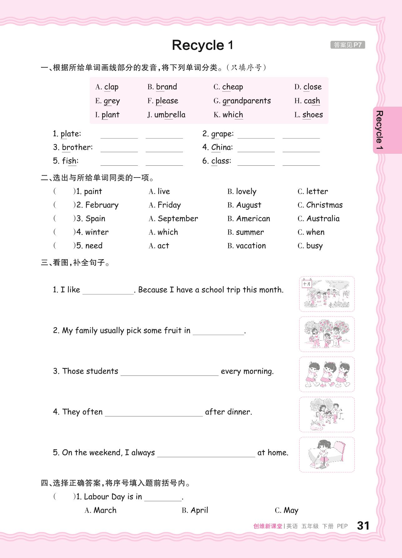 2024春下册五年级英语人教PEP版 Recycle 1