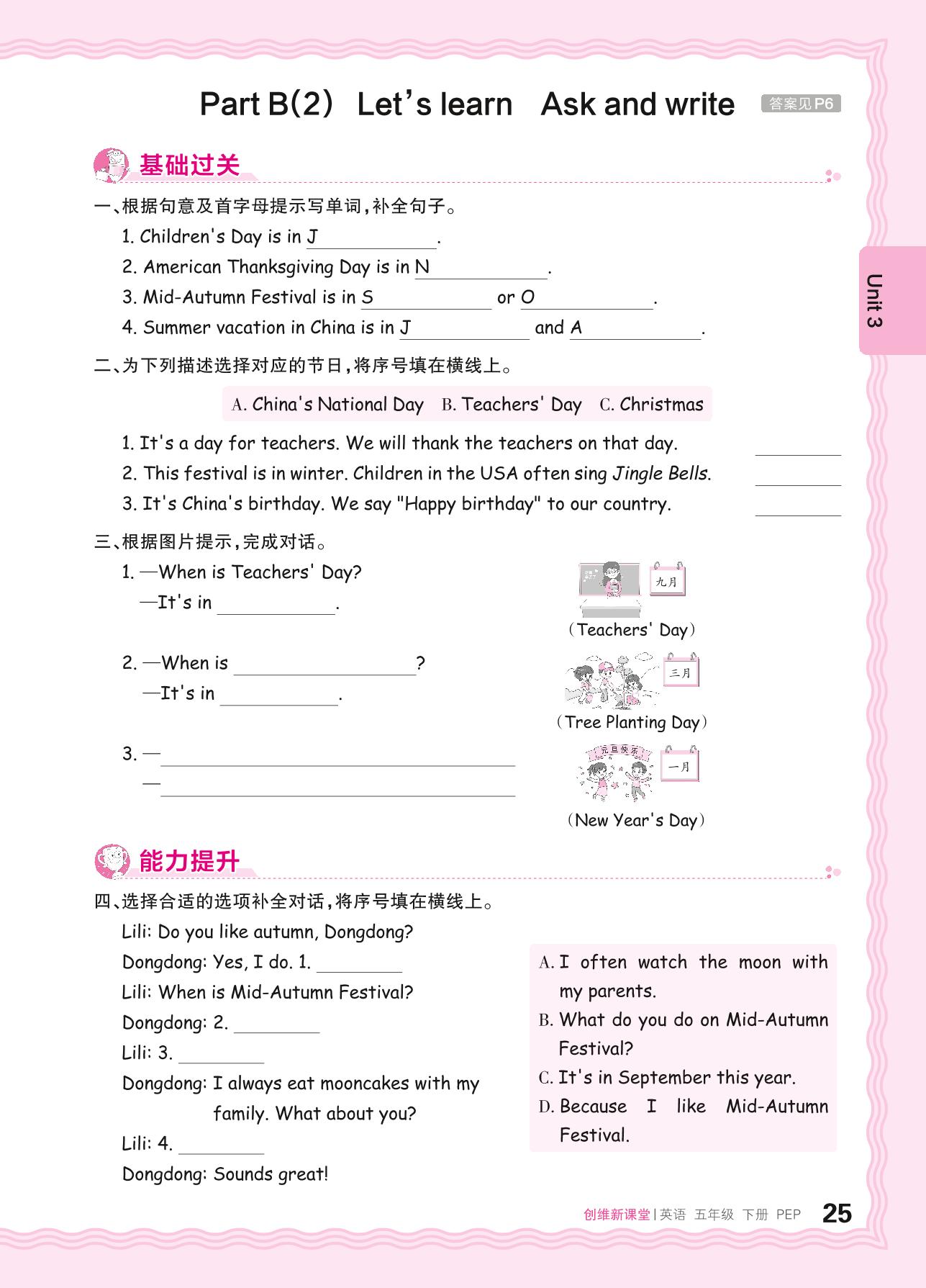 2024春下册五年级英语人教PEP版 Unit 3—Part B(2) Let's learn Ask and write