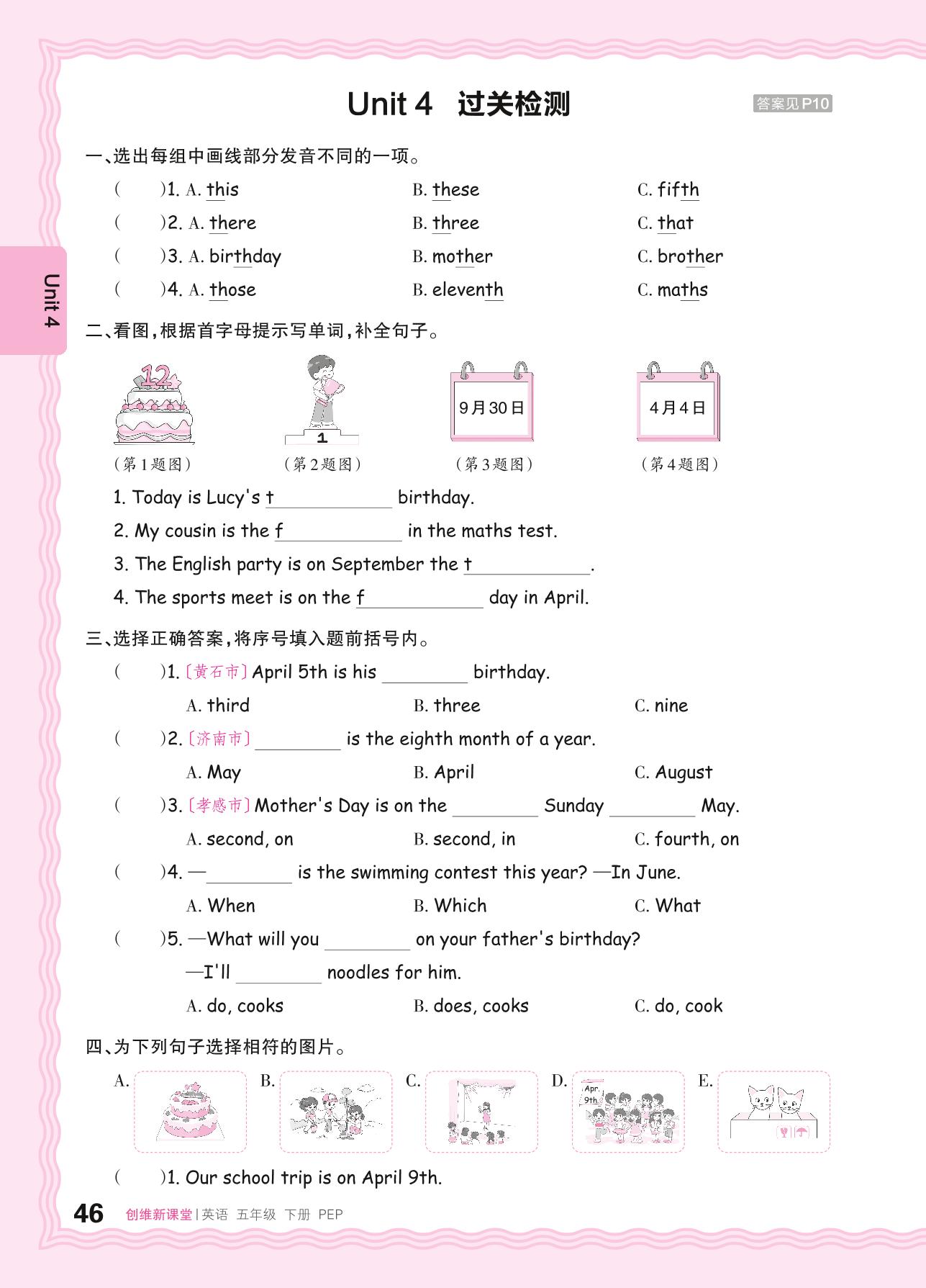 五年级英语人教PEP版(三起始)下册单元卷